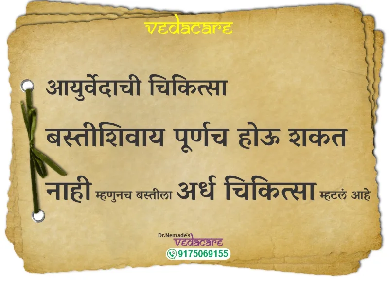 बस्ति चिकित्सा शीघ्रसुख -विशोधित्वात्, आशु अपतर्पण तर्पण योगात्, निरत्ययत्वात अर्थात्… अनुपद्रव असल्या कारणाने उत्तम चिकित्सा आहे
